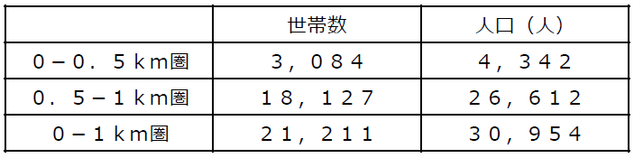 ・店舗から1㎞圏内は単身世帯比率が73.2%、2人世帯比率が15.5%と全体の9割が少人数世帯です。