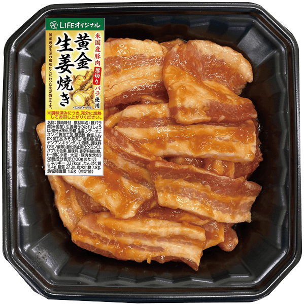 首都圏ライフ限定!本格生姜焼き!「米国産豚肉厚切りバラの黄金(こがね)生姜焼き味付」を新発売!