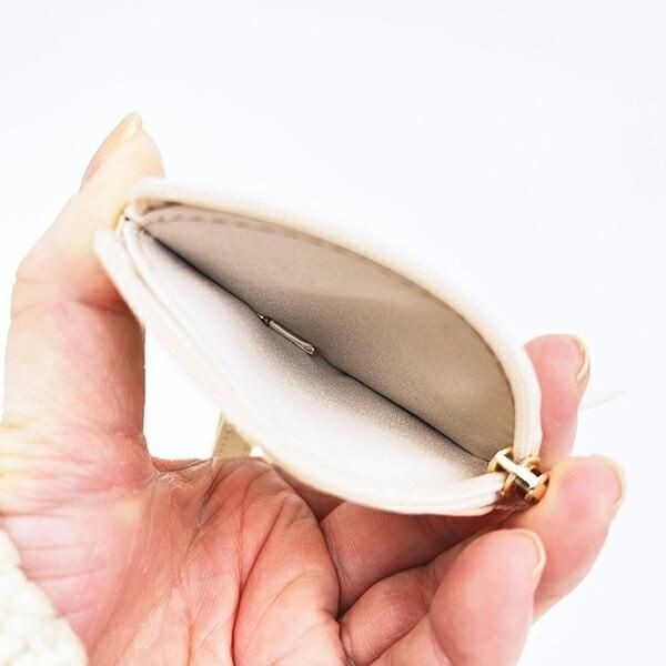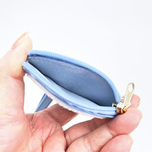さがら刺繍ならではのふわふわ感もあり、さらに優しげな雰囲気。裏面は合皮でシンプルなところもポイントです。