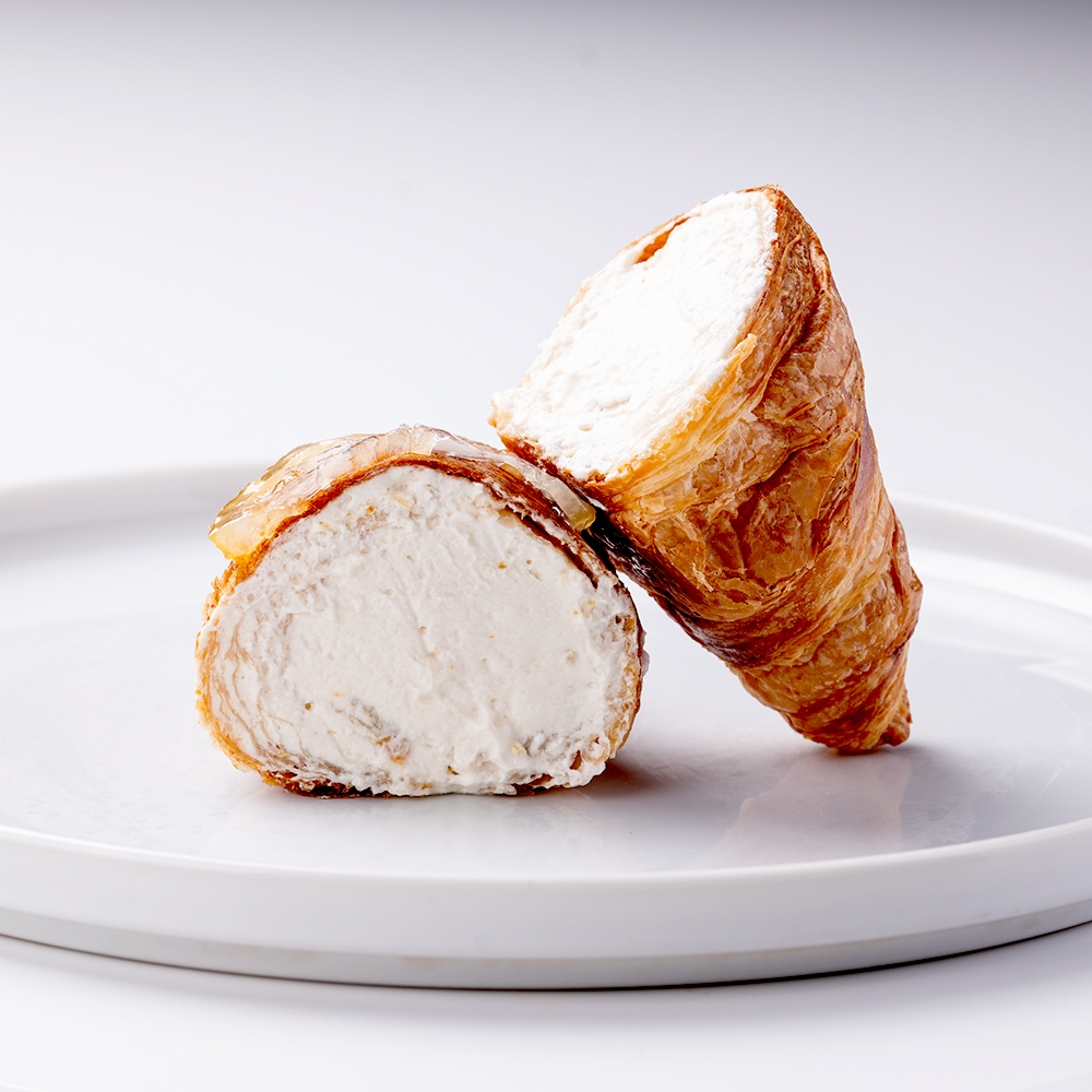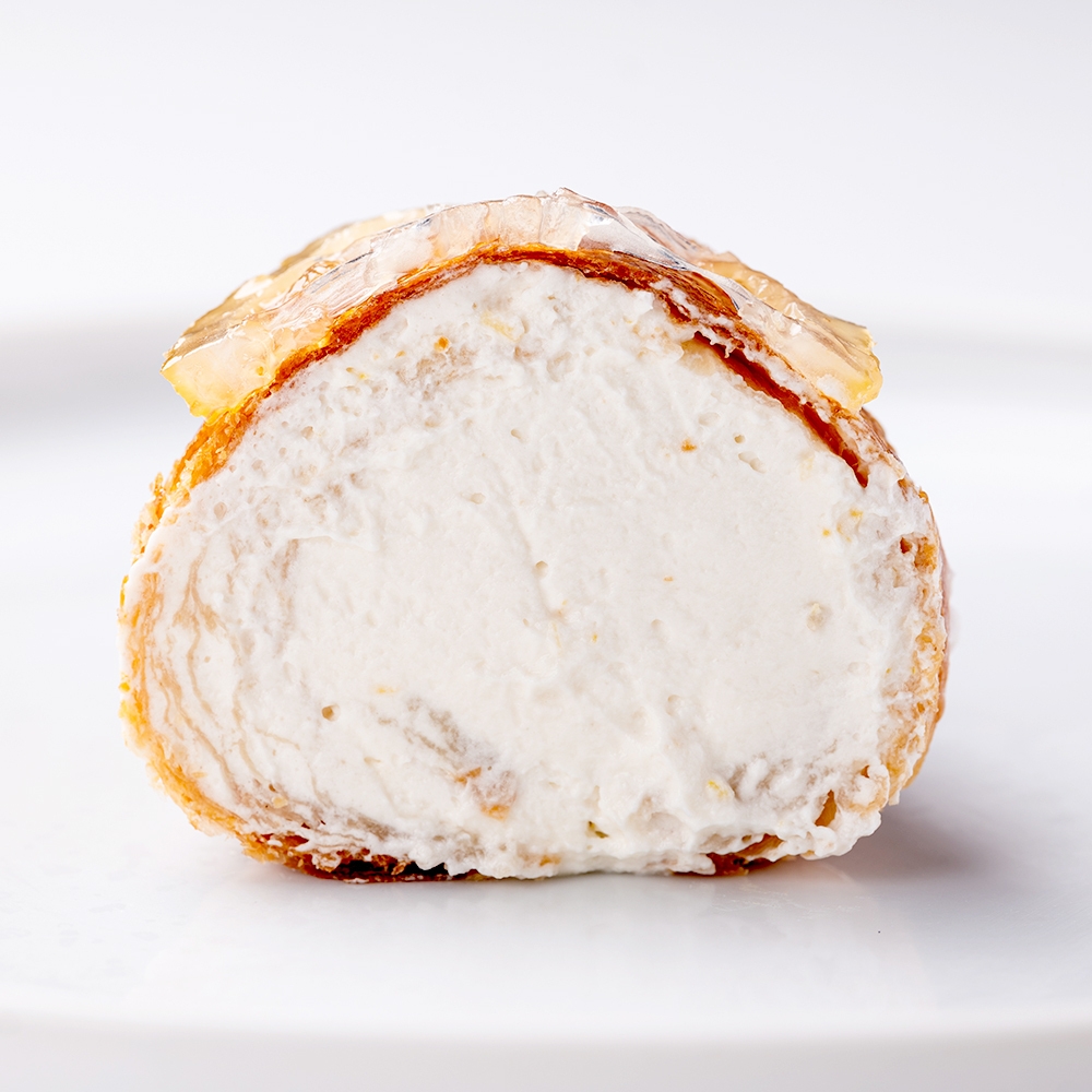 秋の新しいクロッシュとして、「甘レモンクリーム」と「甘マロンクリーム」の2種類が登場します。「甘レモンクリーム」は、レモンの皮を使用した甘酸っぱいクリームが、サクサクのクロワッサン生地と相性抜群。トッピングしたシロップ漬けのレモンも良いアクセントになっています。