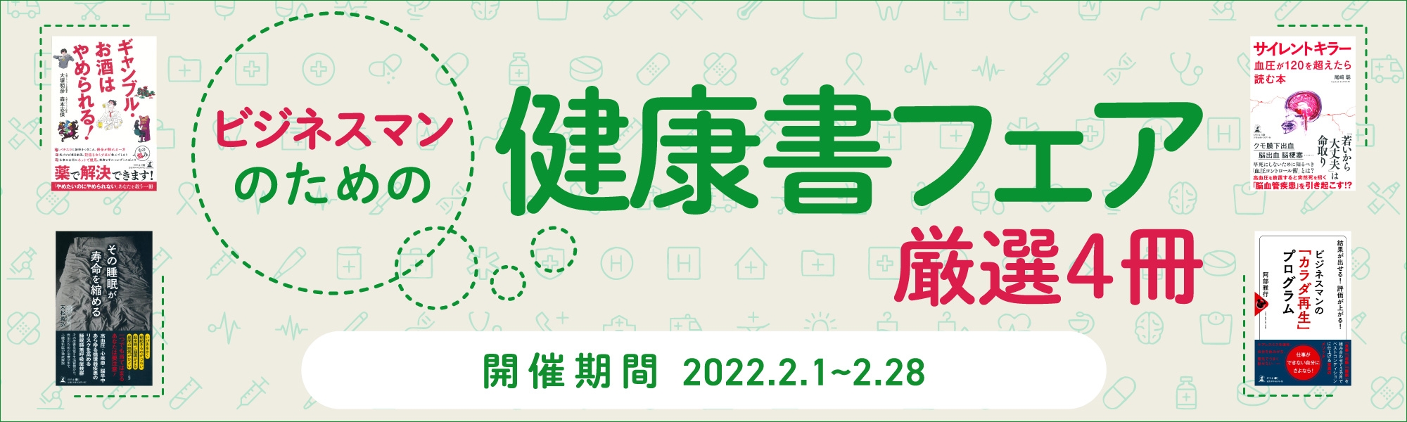 2022年2月1日(火)〜2月28日(月)に紀伊國屋書店 大手町ビル店、八重洲ブックセンター 本店(2F)、三省堂書店 東京駅一番街店、くまざわ書店 錦糸町店で展開する「ビジネスマンのための健康書フェア」では、ビジネス書・実用書のナビゲートメディアである話題の本.comが厳選した健康書を紹介します。