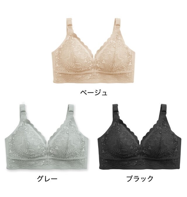 妊娠にて2カップ程度大きくなるバストへのサイズ対応に加え、締め付けないのに安定感のあるサポート力を実現。脇や背中から集めたお肉を無理なくバストに寄せて上げる優秀パターンで谷間が生まれ美しいバストに。同色のレースで繊細かつ上品な印象に、着ているだけで気持ちも弾みます。
