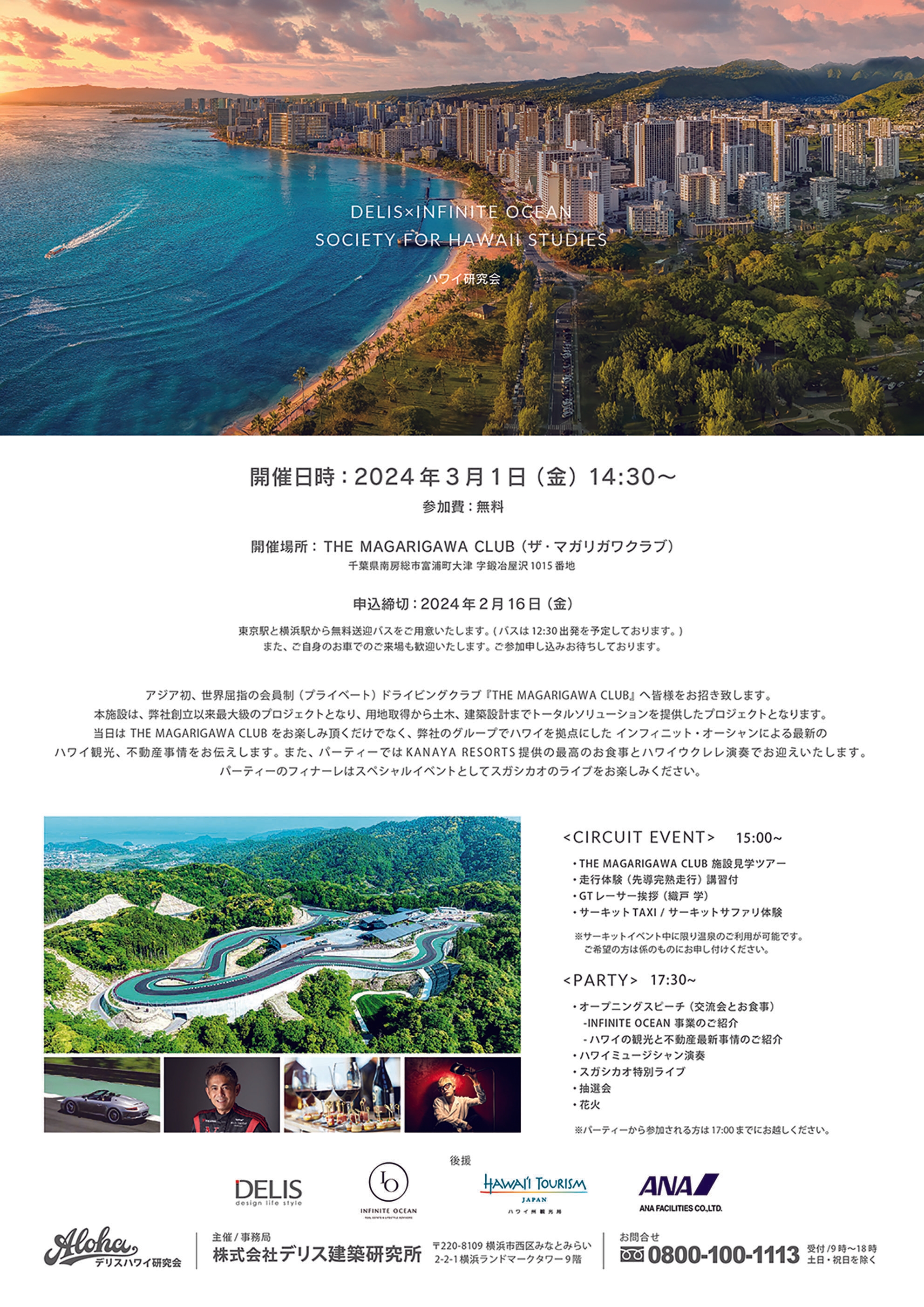 ハワイ不動産会社インフィニット・オーシャンが贈る 『DELIS×INFINITE OCEAN ハワイ研究会』へご招待 「THE MAGARIGAWA CLUB」(千葉県南房総市)で3月1日に開催