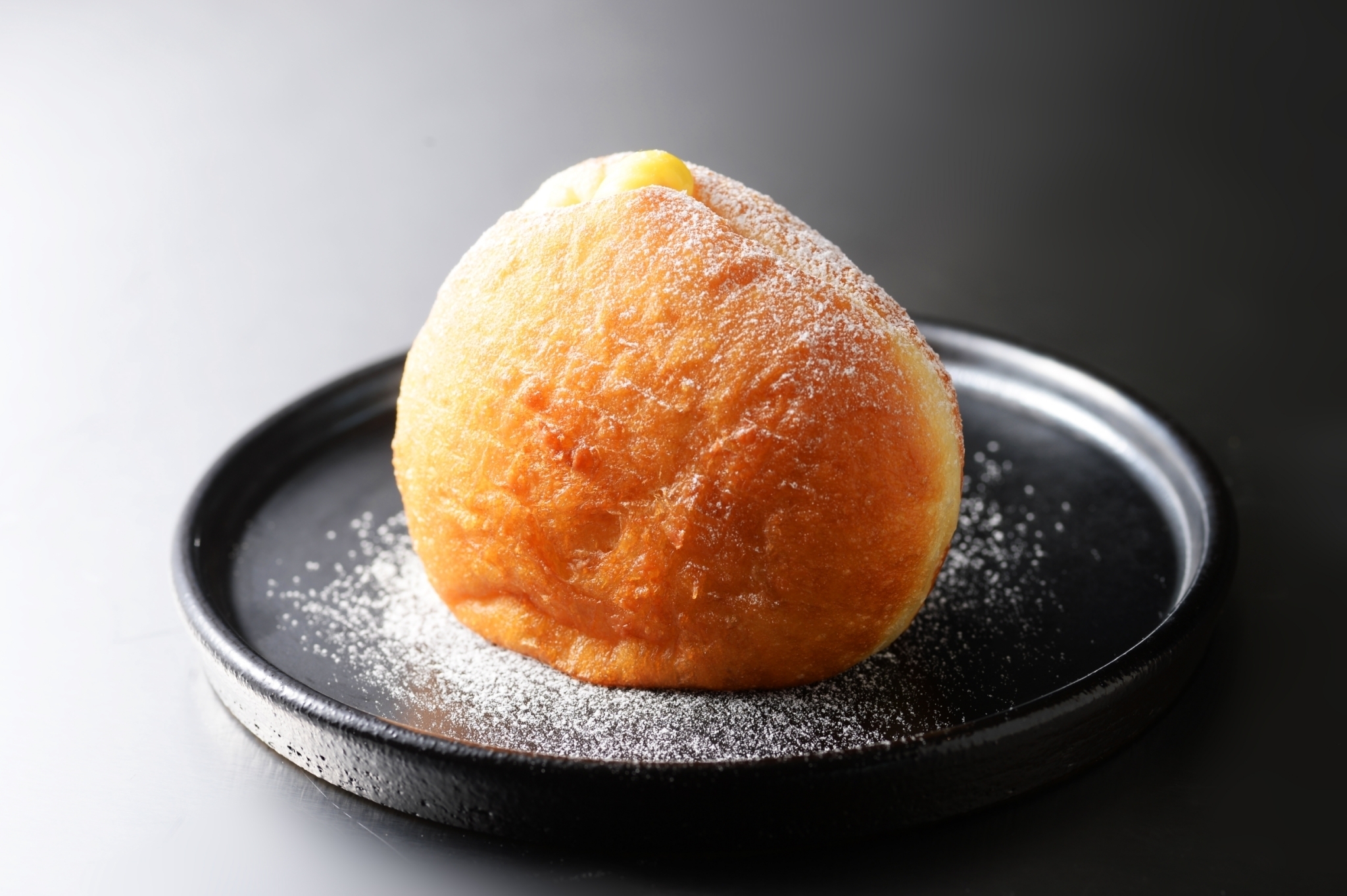 「MILK DO dore iku?」の生ドーナツは、十勝の小麦粉をメインに卵とバターをふんだんに使用した、しっとりなめらかな生地が特徴。北海道美深の自社牧場で育てた、保存料など使っていない低温殺菌の牛乳は、コクが出て甘みがある、生乳に近い味のクリームが実現。クリームはお客様へ提供する直前にたっぷりと注入することもできます。また高温で一気に揚げることで、外はカリッと揚がり、中身は生クリームのようなとろける口溶けになるよう仕上げています。味は自家製カスタード、チョコ、プレンドシュガー、季節商品など約10種です。