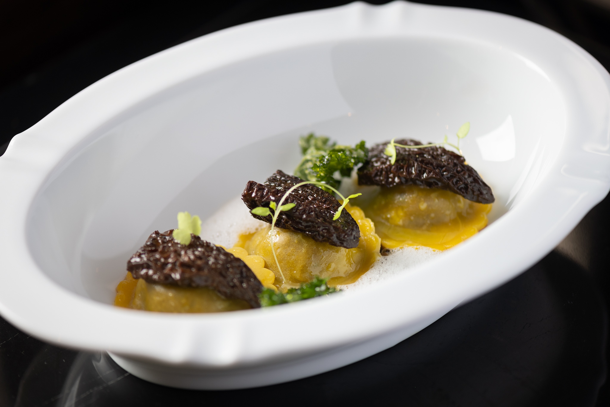 ・和牛のオックステールラビオリ|ロースト・マッシュルームのラグー|マッシュルームのジュ|アルバ産白トリュフ