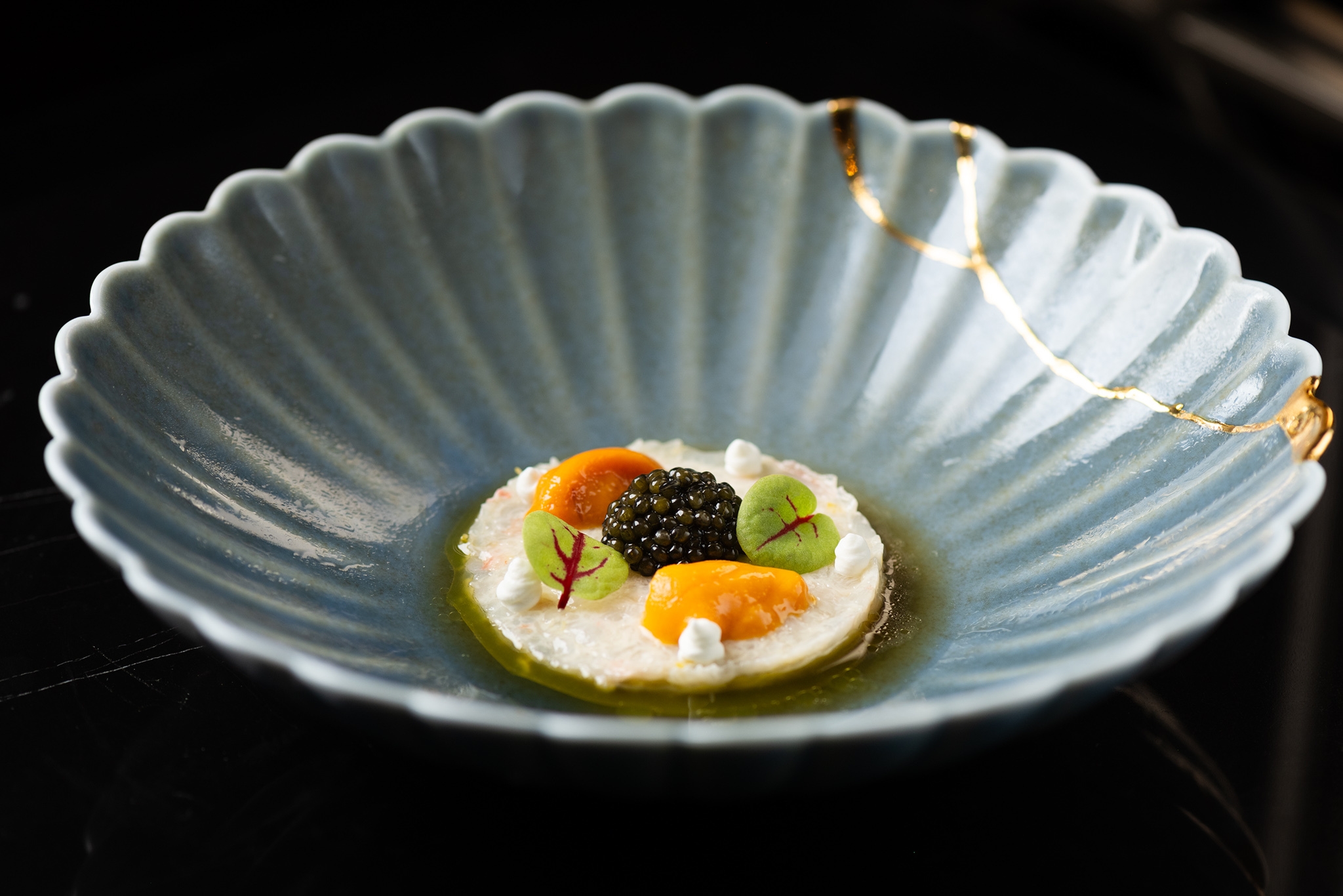 ・ラングスティーヌのタルタル|オシェトラキャビア|北海道産ウニ|ポン酢|オリーブオイル