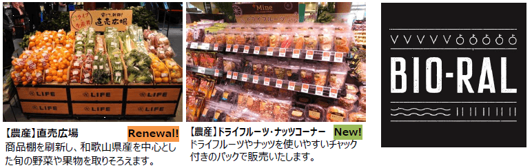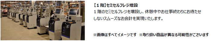 今回の改装では、オフィス・単身者が多い地域ニーズにお応えするため、惣菜コーナーや手作りパンの「小麦の郷」に新商品を豊富に品ぞろえいたします。また、体に優しい商品を取り扱う「ビオラルコーナー」を設置するほか、1階のレジを増設し、スムーズなお会計を実現いたします。