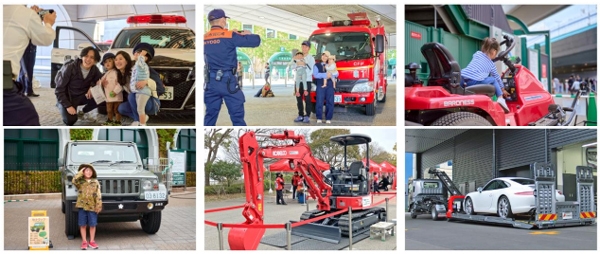 今回は昨秋開催で大人気だった「はたらくくるま」が前回よりもパワーアップして再集合。総勢15台以上が集まり、一部車両では乗車体験やこども制服の着用体験が可能です。