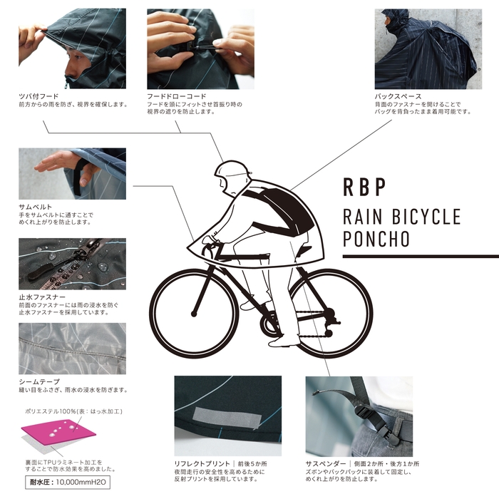 W by Wpc.から自転車用レインポンチョに新作&新デザインが登場!高機能で走行時の安全に配慮した、自転車に乗る人のためのレインポンチョ