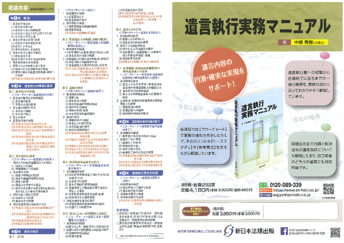 新日本法規出版株式会社(所在地:愛知県名古屋市中区栄1丁目23番20号、代表取締役:星謙一郎 (https://www.sn-hoki.co.jp/))は、2020年4月に発行した「遺言執行実務マニュアル」を増刷し、2024年4月19日(金)に入荷いたしました。