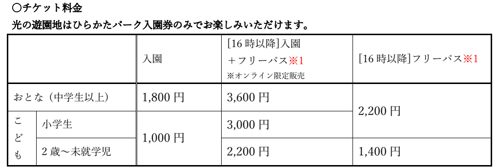 ※[16時以降]フリーパスのみは、園内インフォメーションで販売いたします。