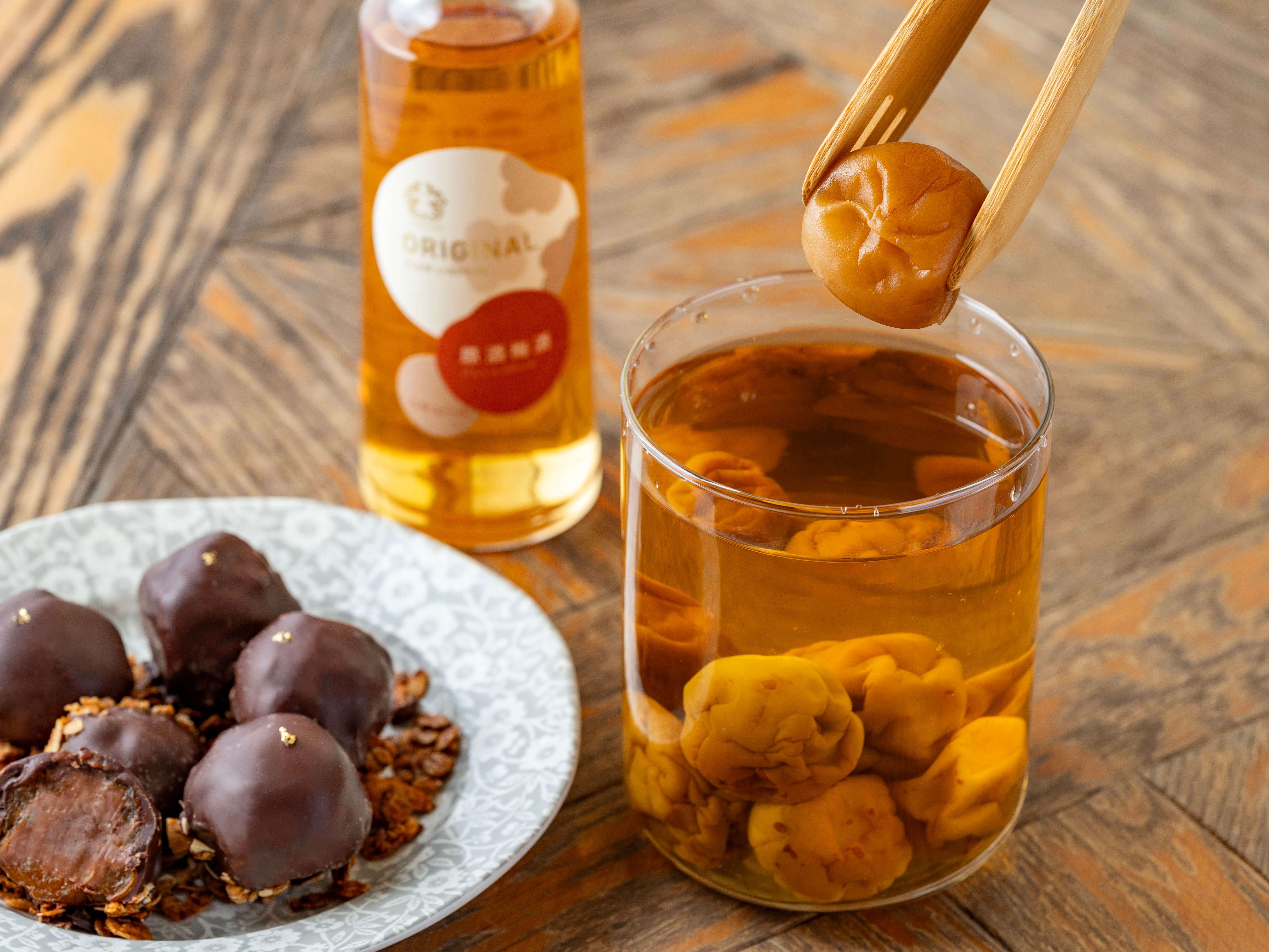 「原酒梅酒」の製造に使用された完熟南高梅は、ジャムやペーストなどに再利用されることが多いですが、本商品ではその梅に新たな視点でアプローチ。完熟南高梅の香りや風味を最大限に生かし、ショコラティエの技術で贅沢なトリュフチョコレートに仕立てました。
