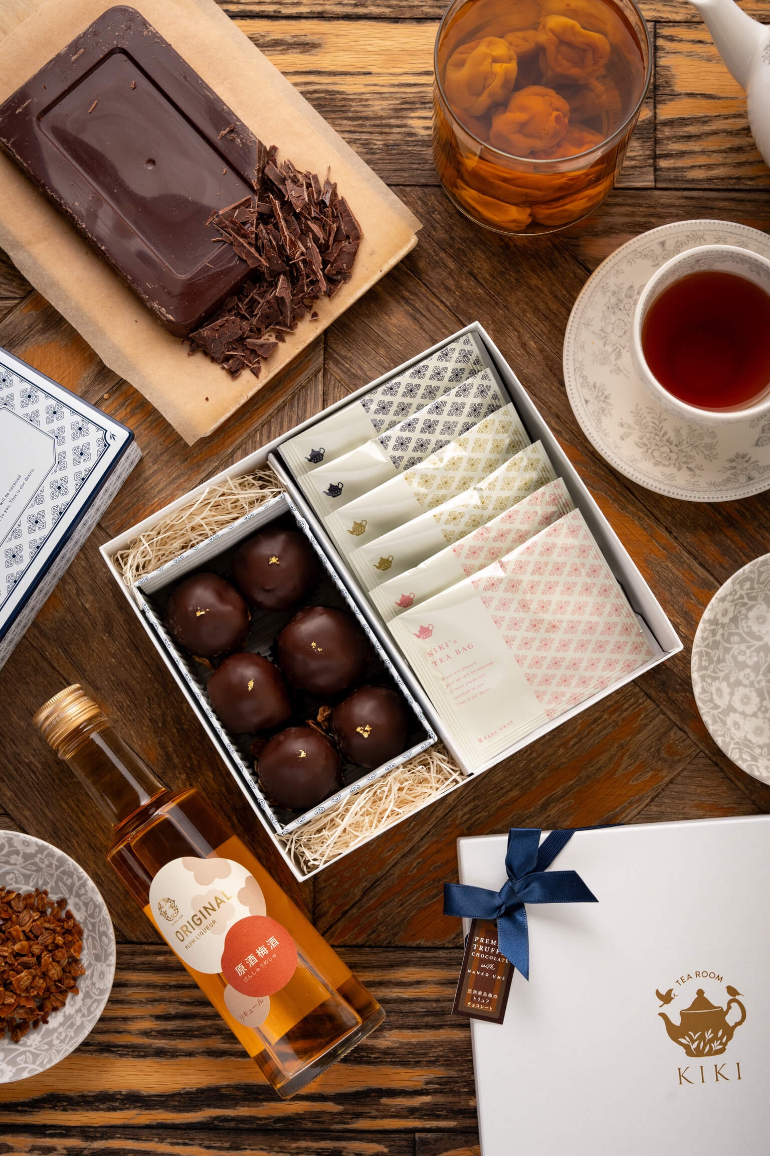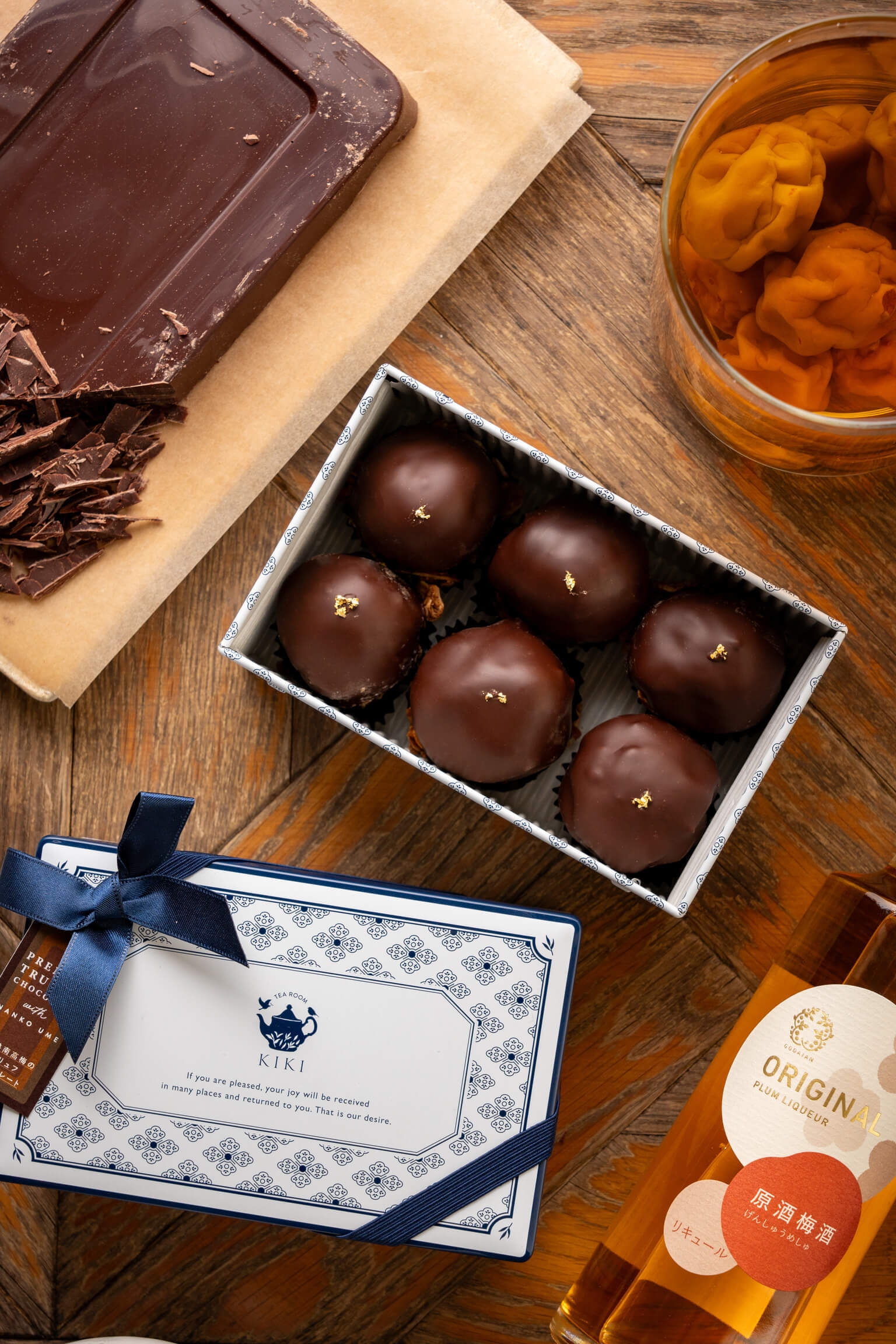TEA ROOM KIKIが厳選したベルガモットの爽やかな香りが特徴のアールグレイを練り込んだミルクガナッシュは、濃厚でなめらかな口溶けと上品な味わいが魅力。柑橘系のフルーティーな香りが広がり、完熟南高梅の酸味を引き立てながら、チョコレートとの絶妙なハーモニーを生み出します。