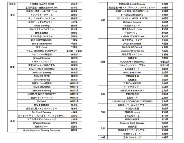 日本全国74社のブルワリーが参加しています。(2021/10/25時点)今後も参加ブルワリーは拡大予定です。