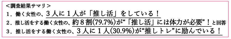 働く女性の “推し活”には体力が必要!? 推し活女性の3人に1人が “推しトレ”に取り組む! | NEWSCAST