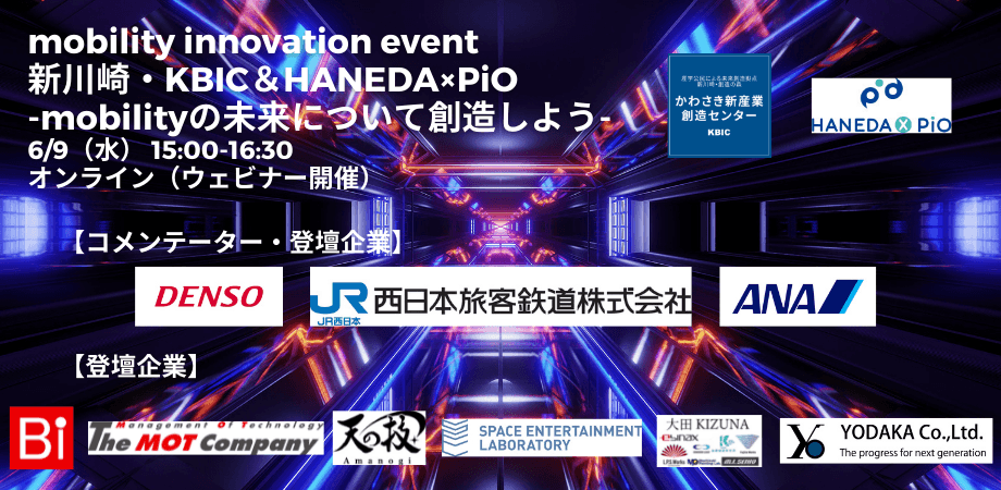ものづくりベンチャー企業が研究開発拠点として集積している、かわさき新産業創造センター(所在地:神奈川県川崎市 以下、KBIC)は、大田区内企業をはじめ、国内外企業、大学・研究機関、起業家・スタートアップなどが集積する拠点「HANEDA×PiO(以下、ハネダピオ)」との合同イベント『【陸・空mobility大企業も集結】mobility innovation event 新川崎・KBIC&HANEDA×PiO-mobilityの未来について創造しよう-』を6月9日(水)15時から開催します。