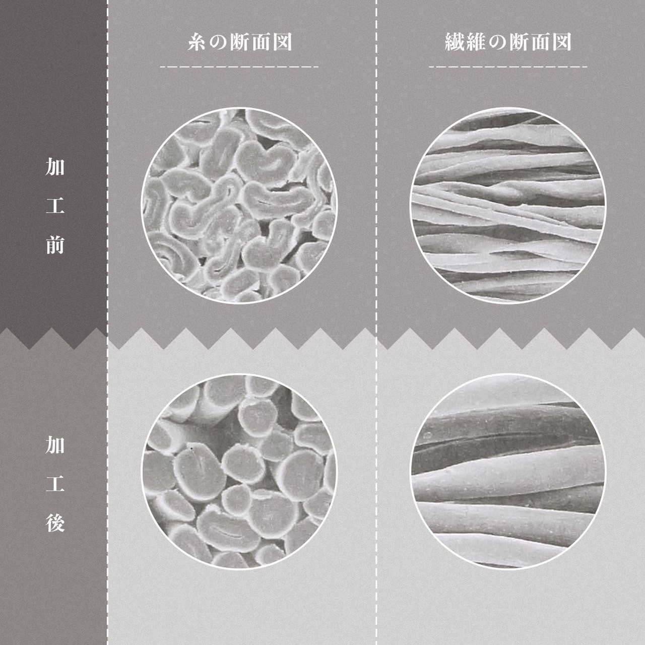 今回使用した生地には、綿などのセルロース系繊維を改質する加工、「液体アンモニア加工」を施しました。
