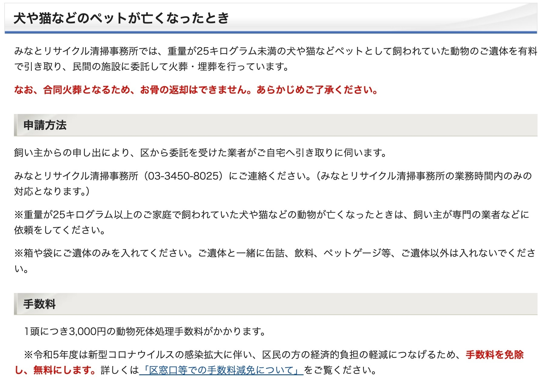 港区のガイドライン(犬や猫などのペットが亡くなったとき):