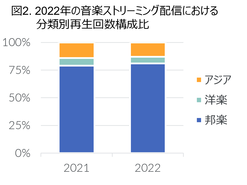 ・前年に続き邦楽が市場をけん引し、分類別再生回数の構成比では8割超え