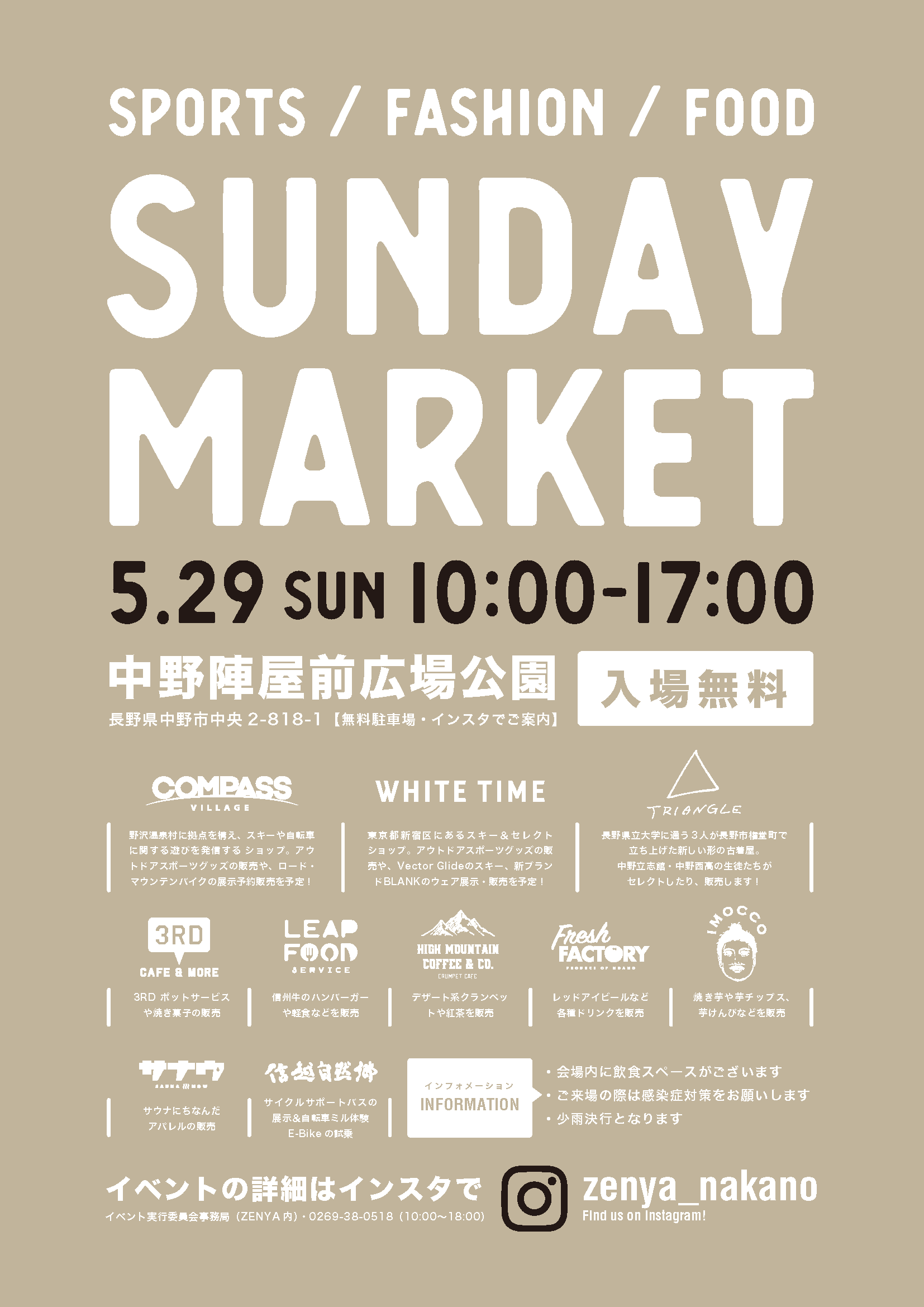 ※当日、同会場で開催されるイベント「SUNDAY MARKET」に出店参加し、いただいた思い出の服やボランティア参加した生徒たちがセレクトした古着を TRIANGLE 店主と共に販売をします。