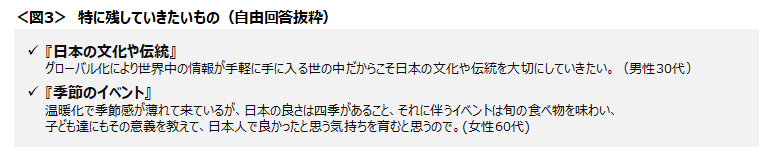 今の時代に不要と感じるもの、これからの時代に残していきたいものについて聴取しました。