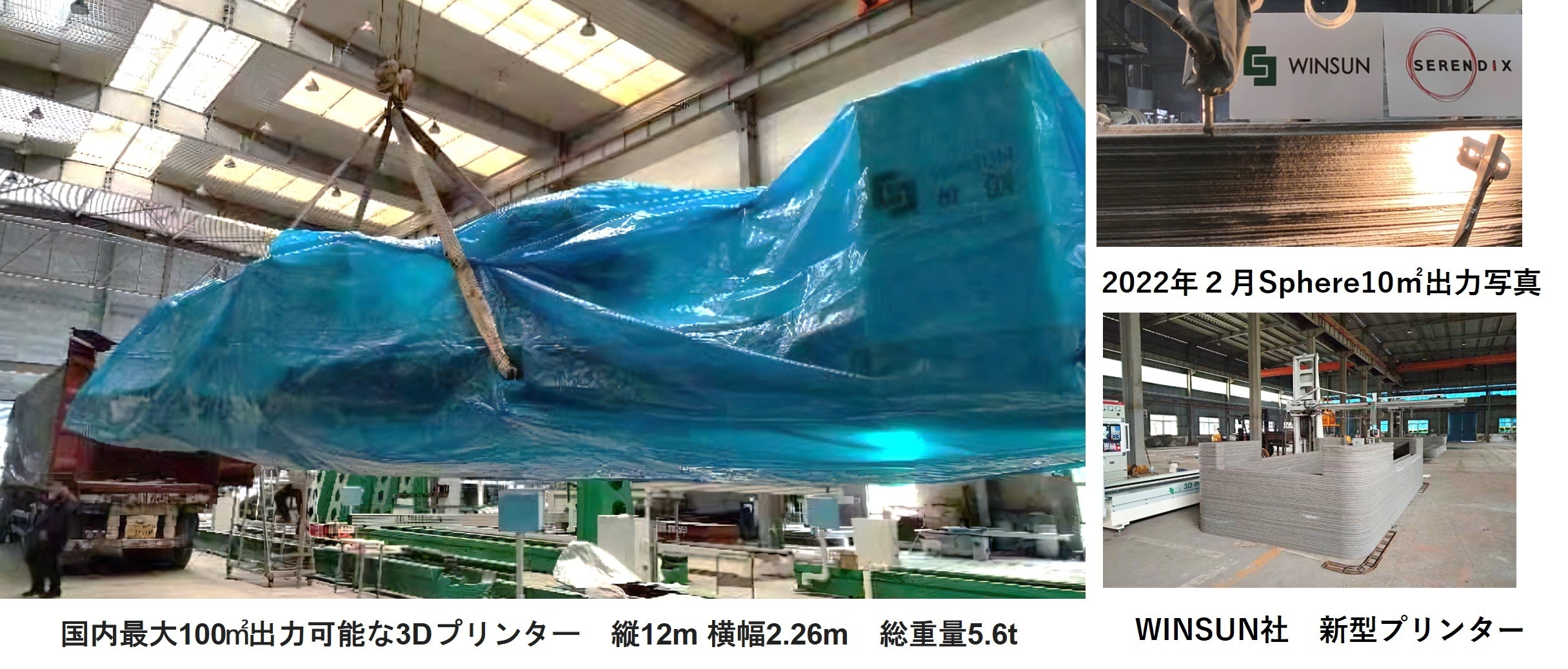 日本初の3Dプリンター住宅メーカー セレンディクス 3D建築業界最大手WINSUN社より一般住宅100m2出力可能な 国内最大3Dプリンターを導入