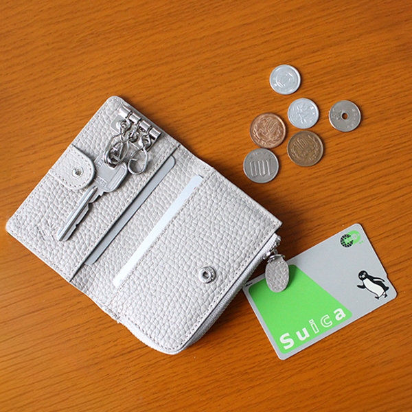 カード収納・キーリング・コインケースを備えたコンパクトデザイン。ポケットにも収まる多機能キーケース。