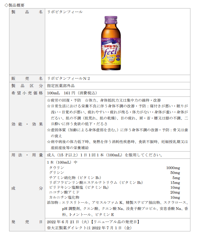 大正製薬株式会社[本社:東京都豊島区 社長:上原 茂](以下、当社)は、ドリンク剤「リポビタンファイン」と「リポビタンフィール」(いずれも指定医薬部外品)を現代の女性の疲れに寄り添った処方にリニューアルし、6月21日(火)に発売いたします。