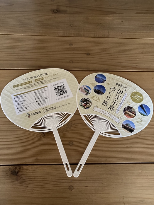 ウチワ及びチラシは、伊豆半島内の観光協会(観光案内所)や対象の観光施設、伊豆の国 大河ドラマ館などでの配布を予定しております。※各施設ともに予定枚数に達し次第終了