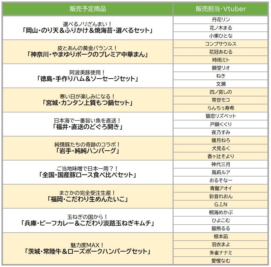 販売する商品は、JAタウンの商品の中からお肉や各地の特産物などこだわりの10商品を選定。人気Vtuberの根本凪さんをはじめとした総勢31名のVtuberが売り子となって販売会を行います。