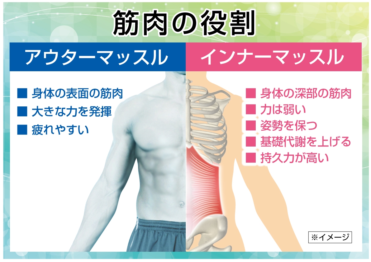 人間の体には「アウターマッスル」と「インナーマッスル」という二種類の筋肉があります。