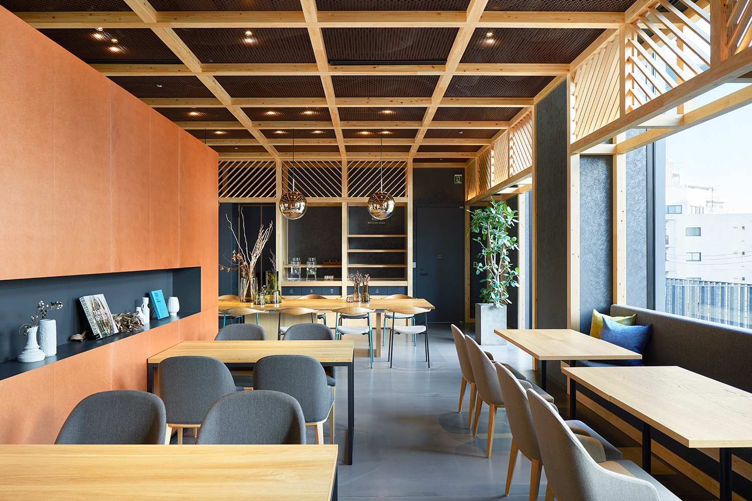 「客室でゆっくりと食事を楽しむのもいいけど、気分を変えて食事をしたいな…」という方には、館内4階のロビーラウンジ「OMOベース」がおすすめです。プライベートな空間で人目を気にせず大塚のグルメを楽しめる客室に対し、OMOベースは、開放的な空間で大塚の街をより近くで感じられるカフェ兼フリーの飲食スペースです。ご宿泊の方は、Go-KINJO出前レンジャーから受け取った料理をOMOベースでも楽しめます。また、1人でも使いやすいカウンター席から、グループに最適なソファー席やテーブル席まで用意しているので、お好きな席で、どんなシーンでも自由に召し上がっていただけます。大きな窓から見える都電を眺めながら「大塚の味」を楽しむことで、よりローカルを感じることができます。