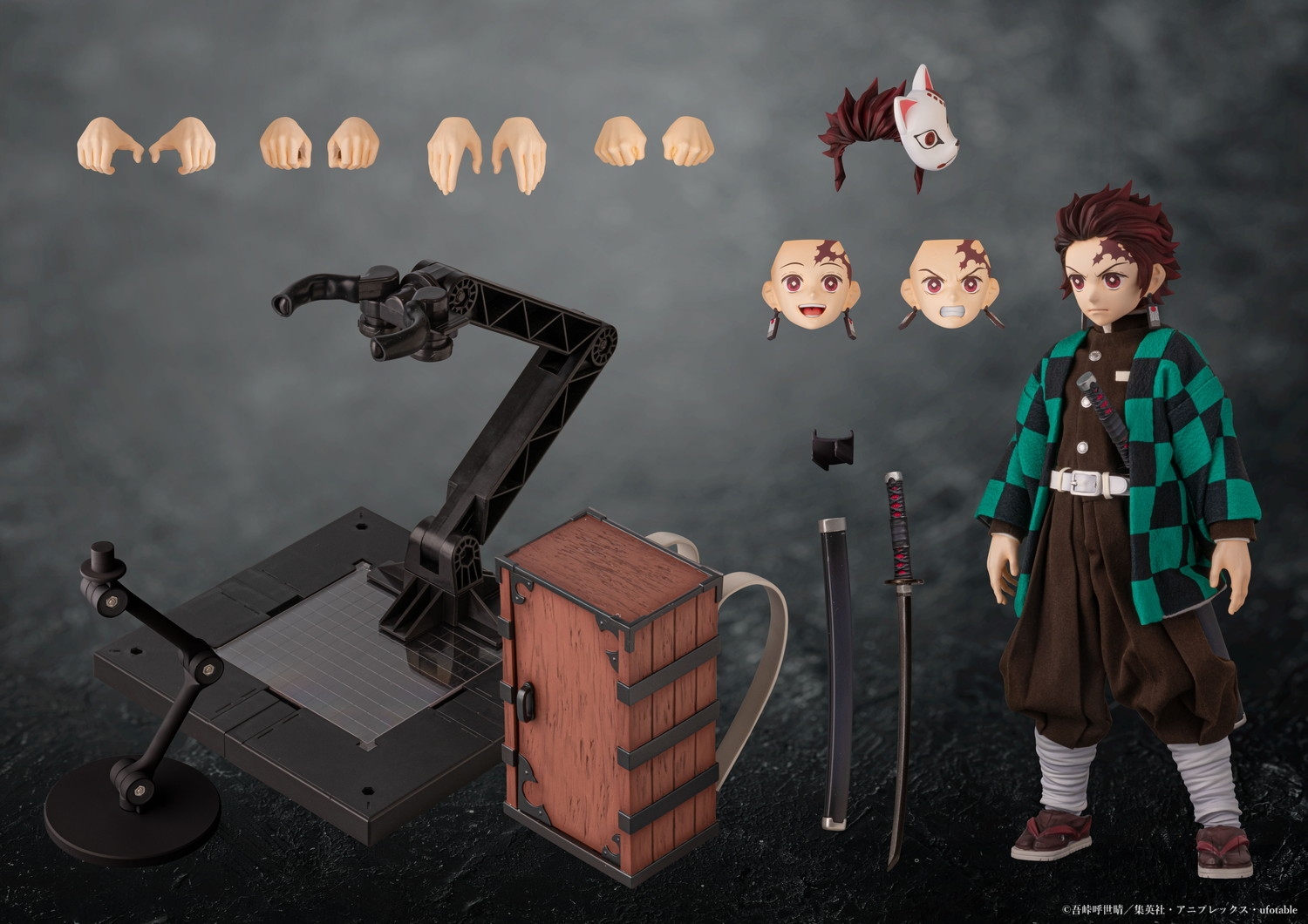 付属品 : 布製衣装、表情パーツ×3、手首パーツ×左右5、前髪パーツ×2、日輪刀、木箱、台座×2