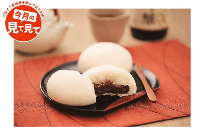ライフが自信を持っておすすめする「今月の見て見て」の近畿圏2月商品に選ばれた「ライフプレミアム 酒饅頭」は、「ライフプレミアム 純米大吟醸」の酒粕を使用した酒饅頭です。北海道産小豆を使用し、日本酒の上品な香りをお楽しみいただける一品です。