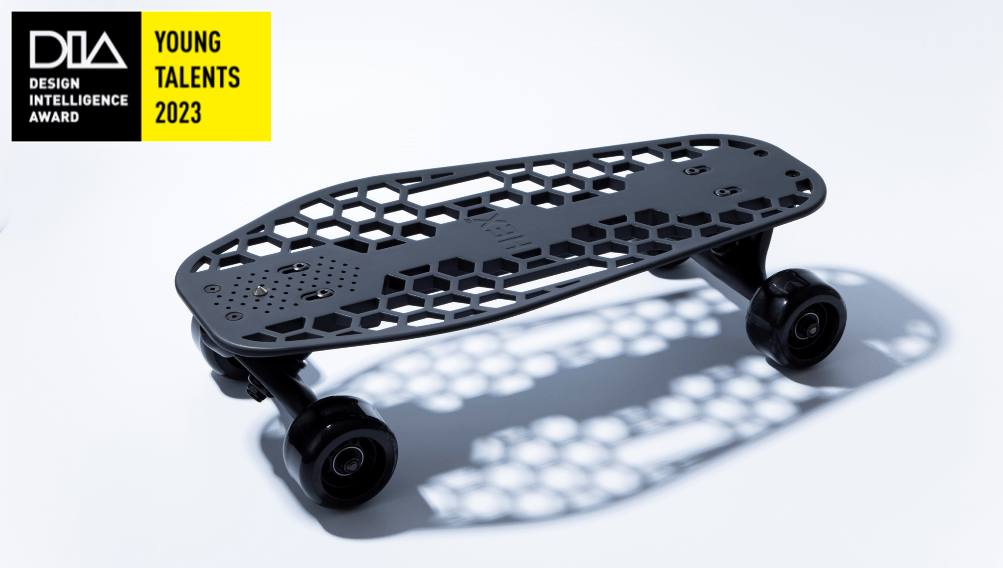 上記、デザイン性と前にしか進まない新しい構造が評価され国際デザイン賞である「DIA」にてスケートボードとして初めて 「Young Talents Award」を受賞しました。