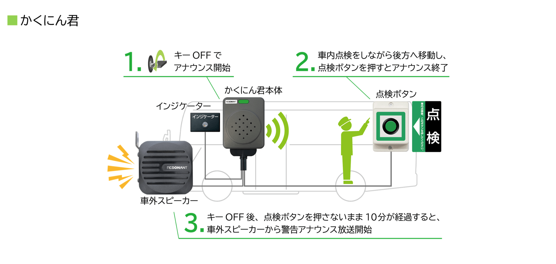 国土交通省ガイドライン適合品! 幼稚園バスの置き去り防止をサポートする  ボタンを押すだけのシンプル操作『かくにん君』!! | NEWSCAST