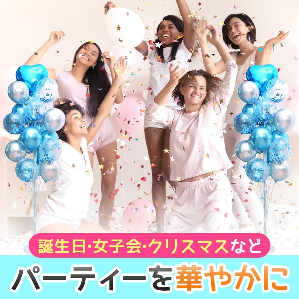 水を入れて重しにできる台座が付いており、人が通過した際の振動や風が吹いても倒れにくい安定感があるので設置場所を問いません。屋外のパーティーや撮影スポットとしても使いやすいです。組み立てに難しい工程や工具は一切使用不要!風船を膨らませたらスティック先端にある留め具に風船を括りつけるだけなので、短時間でデコレーションが完成します。