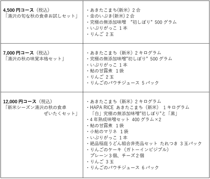 コースは、4,500円・7,000円・12,000円の3つをご用意。全コース送料無料で、各20セットのみの限定販売となります。