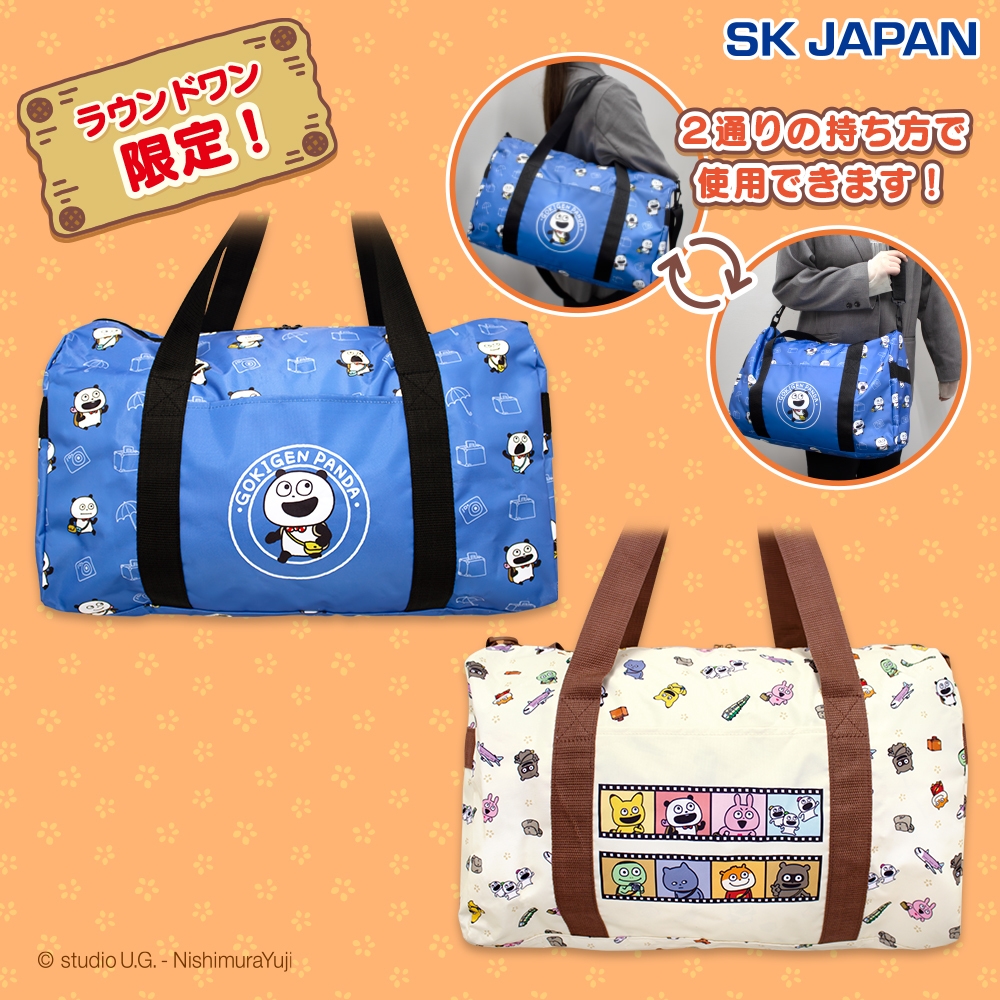 お出かけをイメージしたデザインのバッグやラウンドワン施設内で楽しく遊ぶ姿を切り取ったぬいぐるみなど、限定デザインならではのアイテムが登場します。