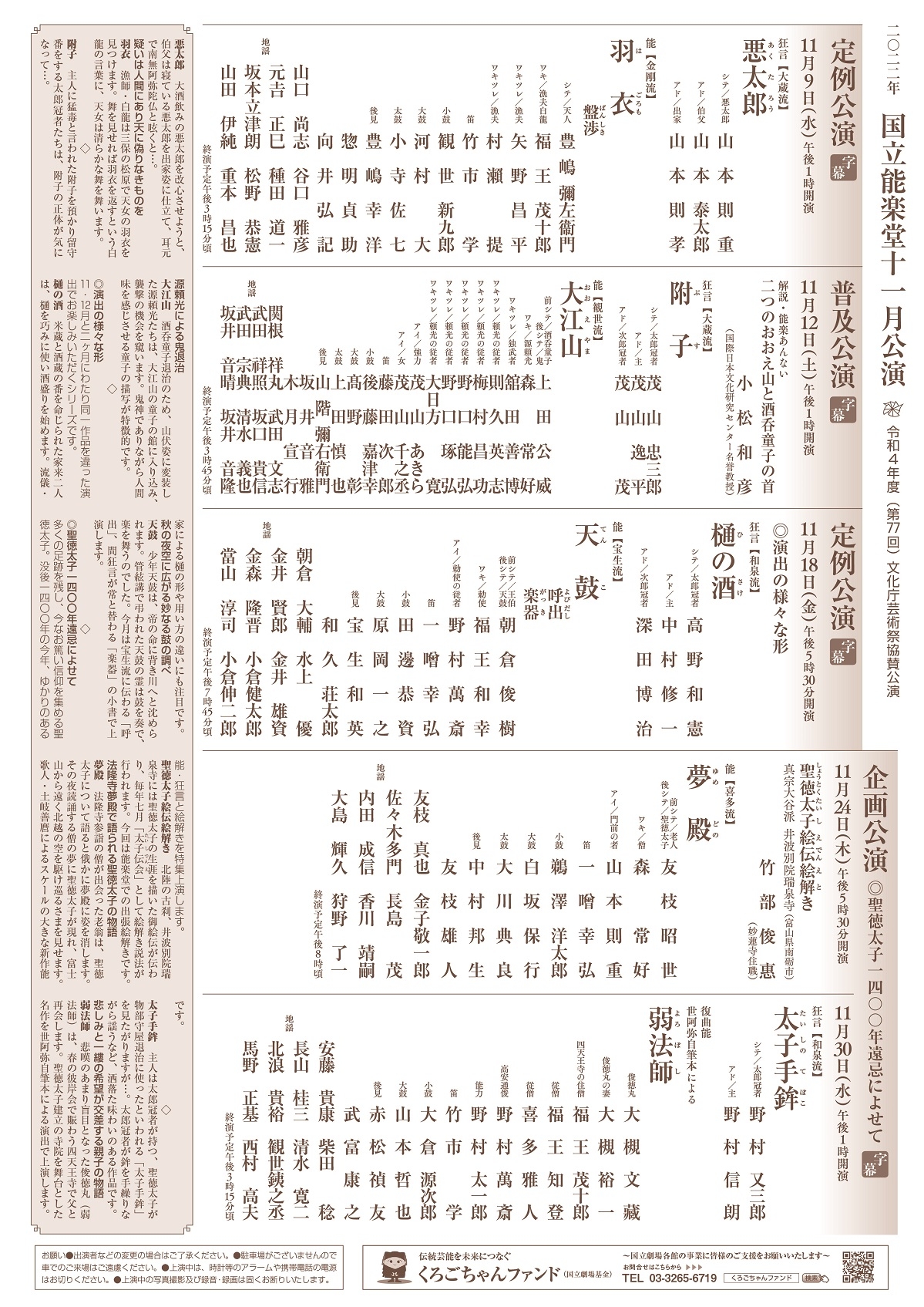 聖徳太子1400年遠忌によせた人間国宝出演の企画公演も 国立能楽堂11月主催公演演目・出演者決定 カンフェティでチケット発売