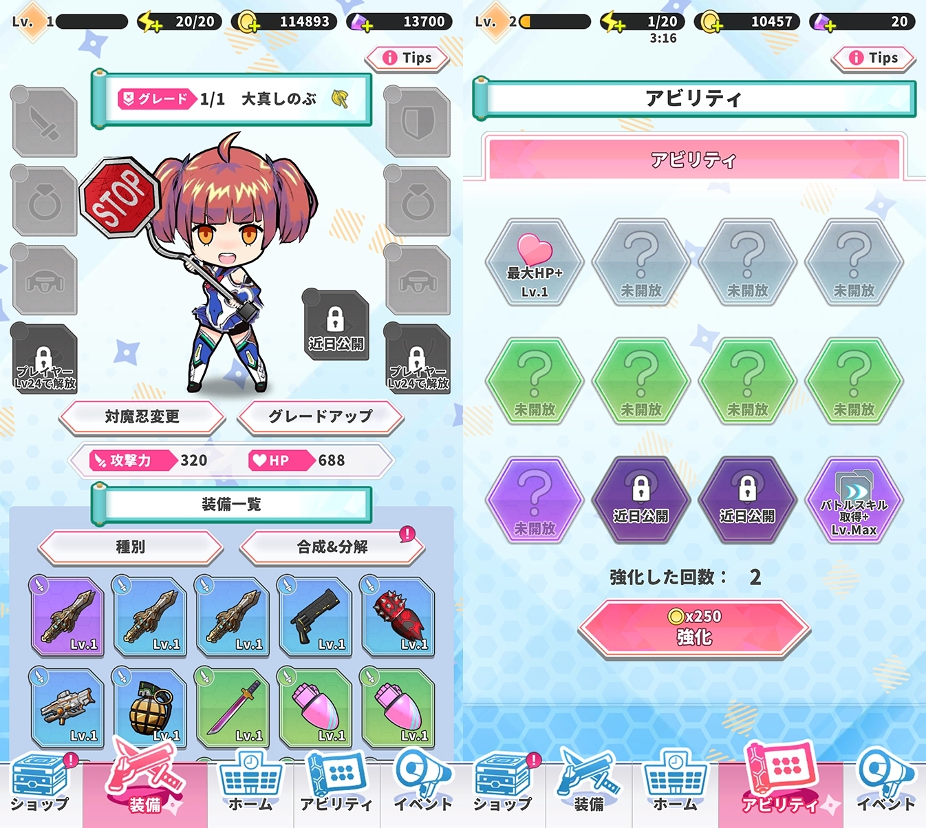 アビリティを強化することで、キャラの潜在能力を引き上げることもできます