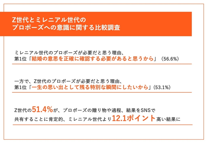 【6月2日の「プロポーズの日」を前に、 ミレニアル世代とZ世代の価値観を比較!】  ミレ二アル世代の理想のプロポーズ第1位は 「日常に寄り添ったシンプルなもの」、Z世代は・・? | NEWSCAST