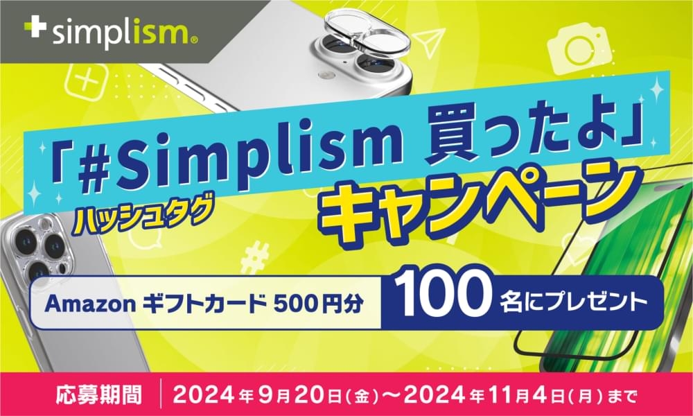 11月4日(月)までキャンペーンを開催中。購入したSimplism製品の写真や動画と一緒に「#Simplism買ったよ」のハッシュタグをつけてXで投稿&フォローして応募。抽選で100名にAmazonギフトカード500円分が当たります。
