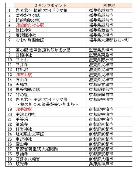 JR西日本・京阪電車・嵐電の主要駅、福井県・滋賀県・京都府・越前市・大津市・宇治市の関連施設 他