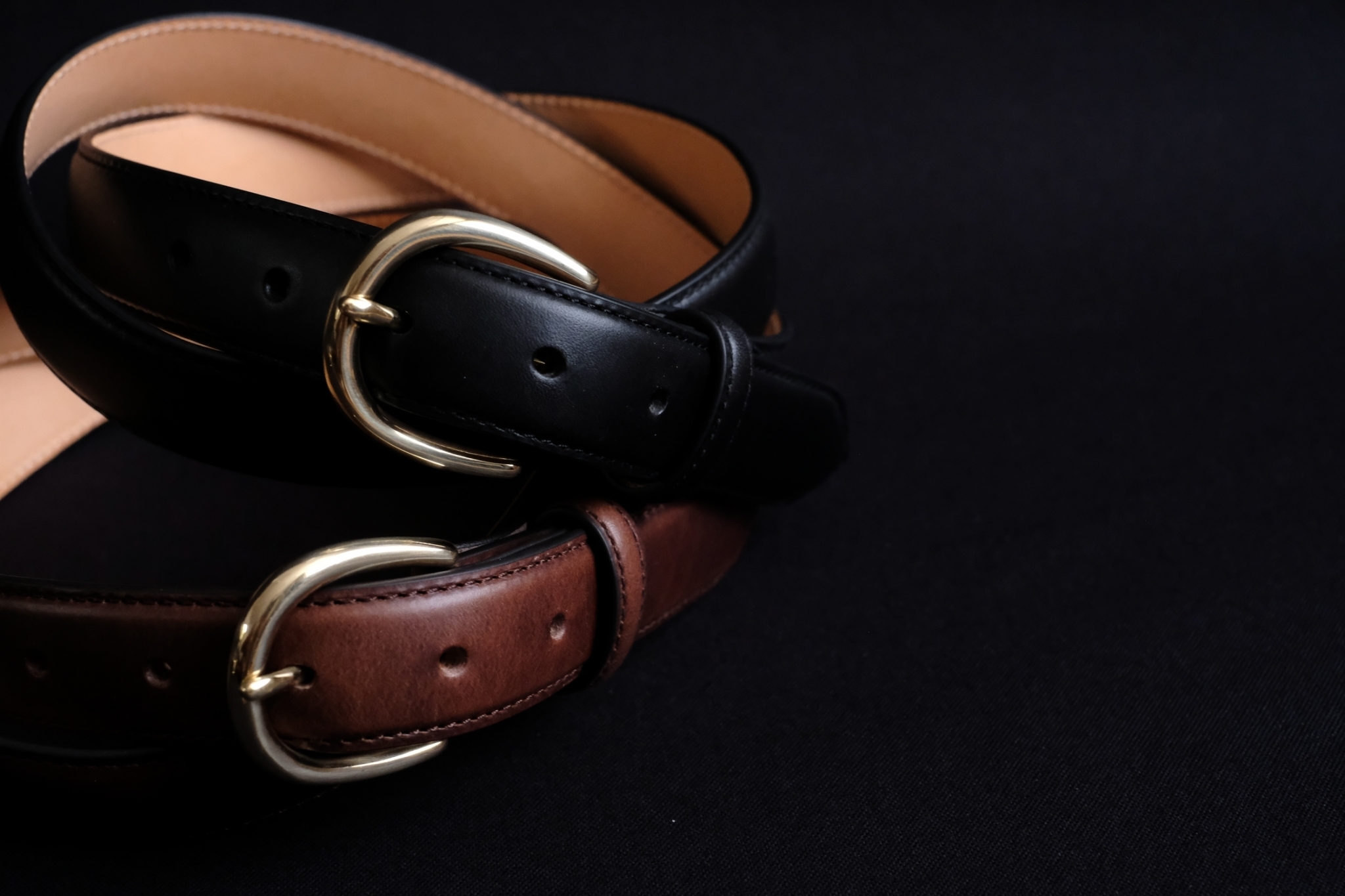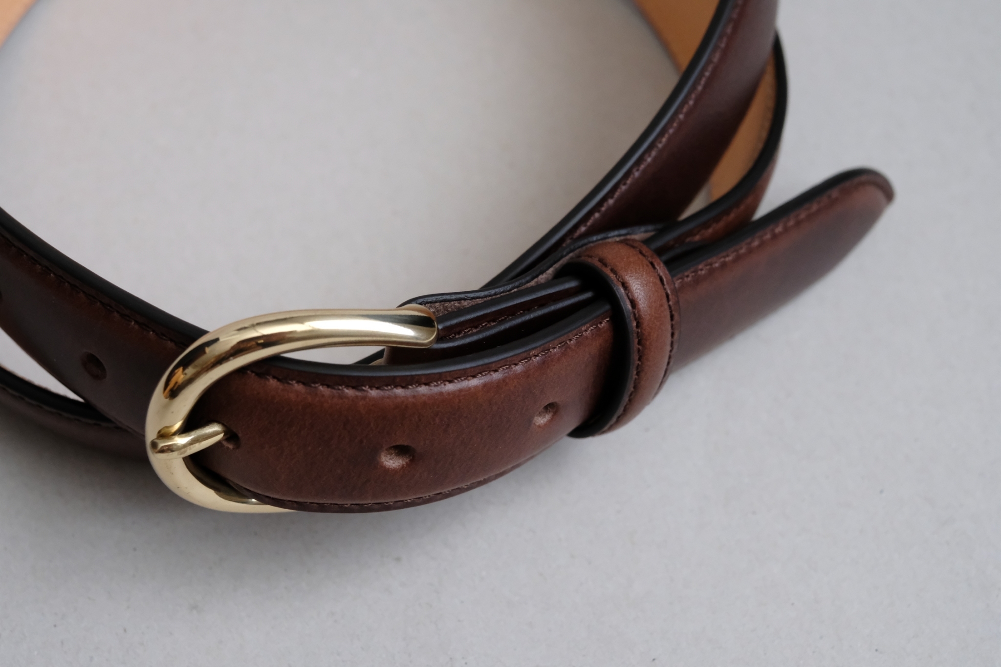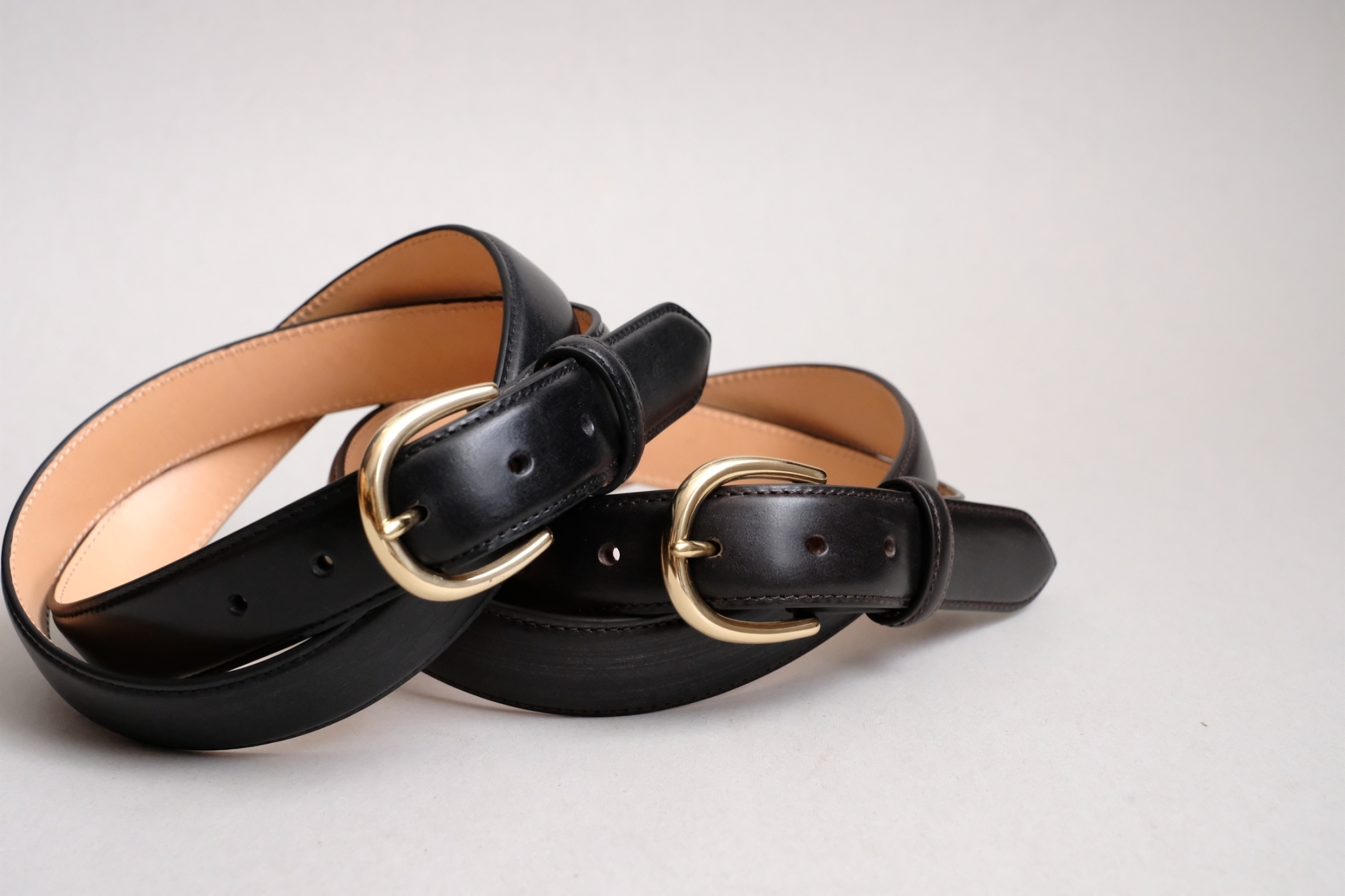 ベルト内部の芯材にも本革を使用することで、適度な厚みと張りが生まれ、ベルト全体がふっくらと立体的な仕上がりに。