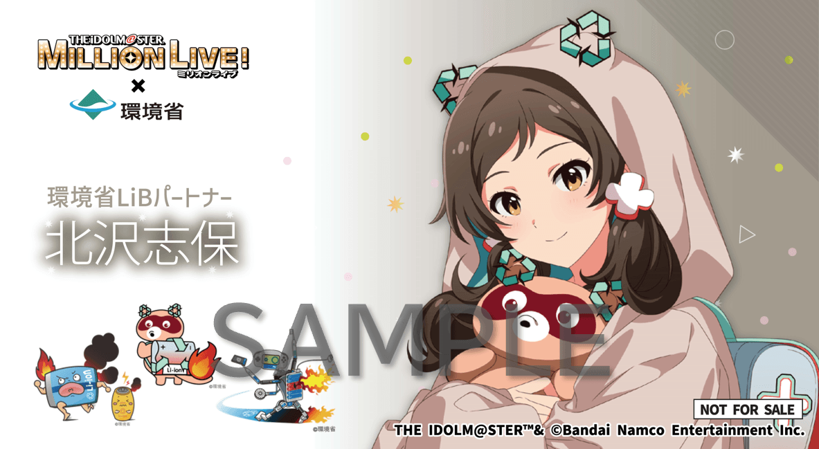 人気ゲームコンテンツ「アイドルマスター ミリオンライブ!」とのコラボ広報として、「アイドルマスター ミリオンライブ!」のアイドルである周防桃子さんと北沢志保さんが環境省LiBパートナーとして、リチウムイオン電池による火災防止の周知啓発を実施します。