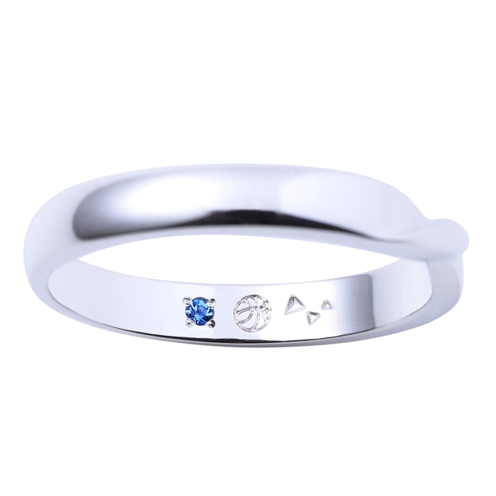 中央部分がツイストされたシンプルで普段使いしやすいデザインに仕上げました。内側にはイメージカラーストーンと、バスケットボールのアイコンを刻印しました。