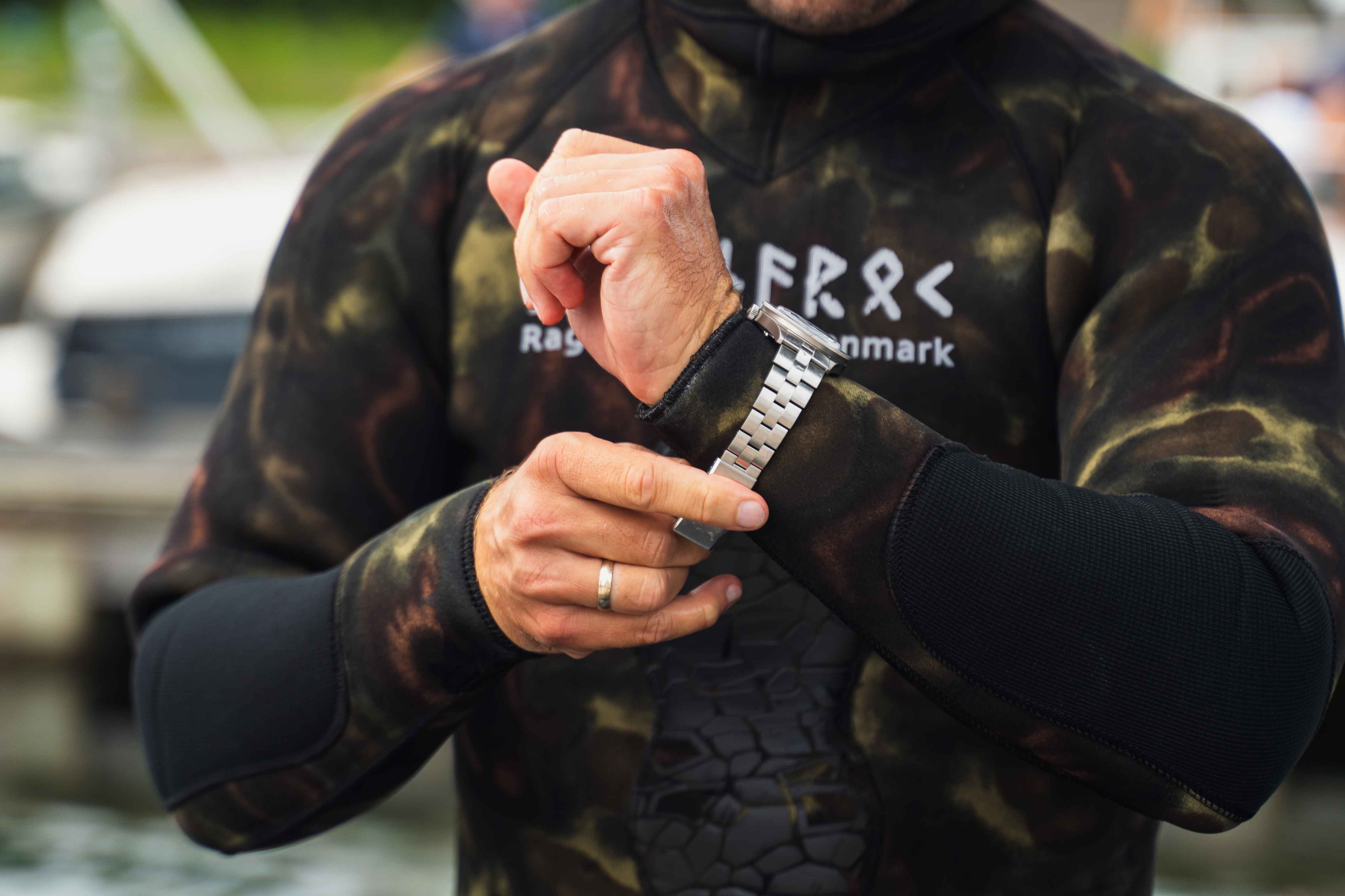 本モデルの名前にある1956年は、初めて本格的なダイバーズウォッチが作られたことが、ダイバーズウォッチの歴史に大きく刻まれ、現在のダイバーズウォッチの発展へと繋がりました。この革命的な時代へのオマージュとして、ダイバーズウォッチの黄金時代を定義した革新と冒険の精神を捉え、付けられた名前が「1956 Marine 」です。