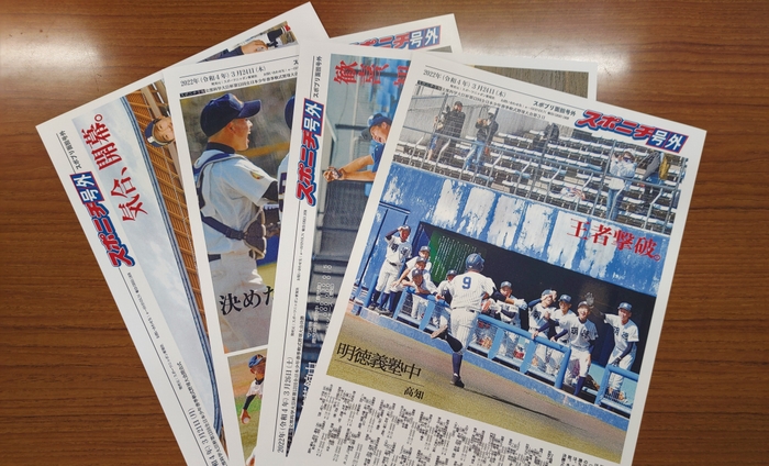 スポニチでは、中学球児の熱戦の模様を伝える号外風紙面を制作し、eプリントサービス「スポプリ」で発売中です。