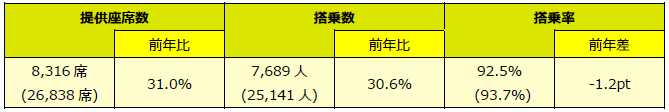 ◆提供座席数・搭乗数・搭乗率